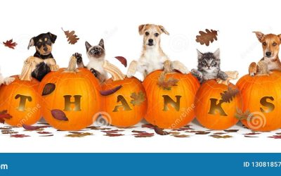 Thanksgiving Dogs and Cats With Falling Leaves.