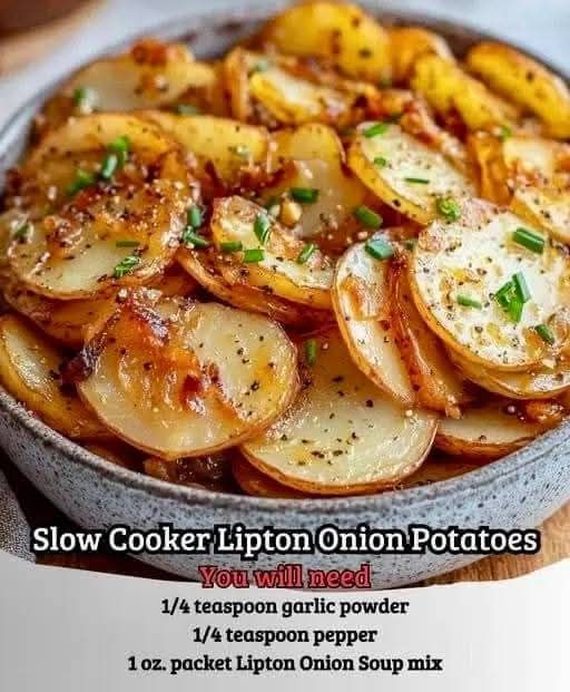 Slow Cooker Lipton onion Potatos adminonNovember 15, 2025November 15, 2025 Ingredients 6 large potatoes, peeled and sliced 1 packet of Lipton onion soup mix 1 cup chicken broth 1/2 cup butter, melted Salt and pepper to taste Chopped fresh parsley for garnish (optional) Next » » La nueva secretaria se quedó paralizada al ver su foto de infancia en la oficina de su jefe… Cinturón Negro Le Pidió A Un Limpiador Negro Pelear Por Diversión — Lo Que Pasó Después SILENCIÓ A… Apostó 10 Millón De Dólares A Que Nadie Domaba Su Caballo – Hasta Que Un Niño Lo Dejó Sin Palabras 🌸 Ingredientes naturales 💚 Tónico Capilar “Raíces Vivas” En 1972 Turistas Desaparecieron en Montaña—40 años Después Hallan Diario en Frasco Junto Árbol!